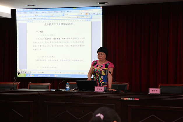 為促進(jìn)公文寫作與處理工作的規(guī)范化、制度化、科學(xué)化,全面提升各投資企業(yè)公文業(yè)務(wù)水平。8月28日,集團(tuán)邀請市法制辦監(jiān)督處丁玉梅處長對(duì)來自集團(tuán)各投資企業(yè)行政辦公人員進(jìn)行了公文基礎(chǔ)知識(shí)培訓(xùn)。 丁玉梅處長結(jié)合公文寫作的規(guī)定,針對(duì)企業(yè)常用文體的寫作方法等內(nèi)容,通過公文實(shí)例,就如何擬寫標(biāo)題、準(zhǔn)確使用標(biāo)點(diǎn)符號(hào),規(guī)范公文格式等作了重點(diǎn)分析。 此次公文寫作培訓(xùn)對(duì)規(guī)范公文處理,提高公文寫作能力,提升公司行政辦公質(zhì)量起了積極作用 |