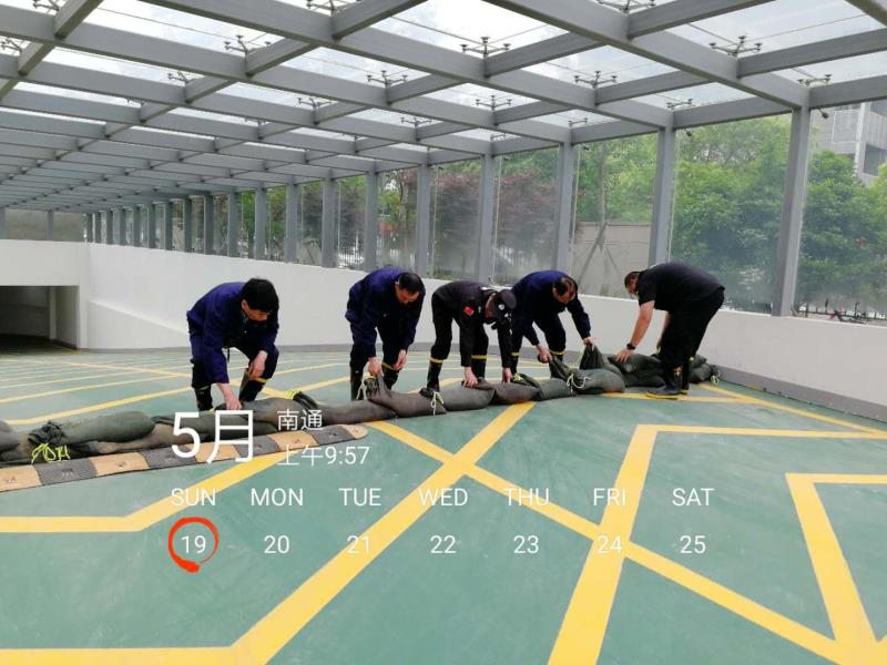 5月19日上午,按照“安全第一,防汛為主、綜合治理”的方針,由產研院資產管理部和南通康源物業(yè)共同組織,在園區(qū)內進行防汛演練,確保在汛期發(fā)生暴雨時,能夠在最短時間內充分發(fā)揮安全保障機制的作用,快速、高效、有序地實施救援工作,提高抵御汛情和應對緊急突發(fā)事件的能力。 為確保本次防汛演練活動的順利進行,按照項目演練大綱和做好防汛演練工作的相關要求,做了充分的前期準備和細致的分工。整個演練的過程,有條不紊,緊張有序,程序流暢。首先對參與演練的全體人員進行相關的常識培訓,然后由警戒組、搶險組、設備組分別對隔離警示、沙袋擋水、水泵強排等項目進行演練,最后由醫(yī)療組對受傷搶險人員進行醫(yī)療包扎。