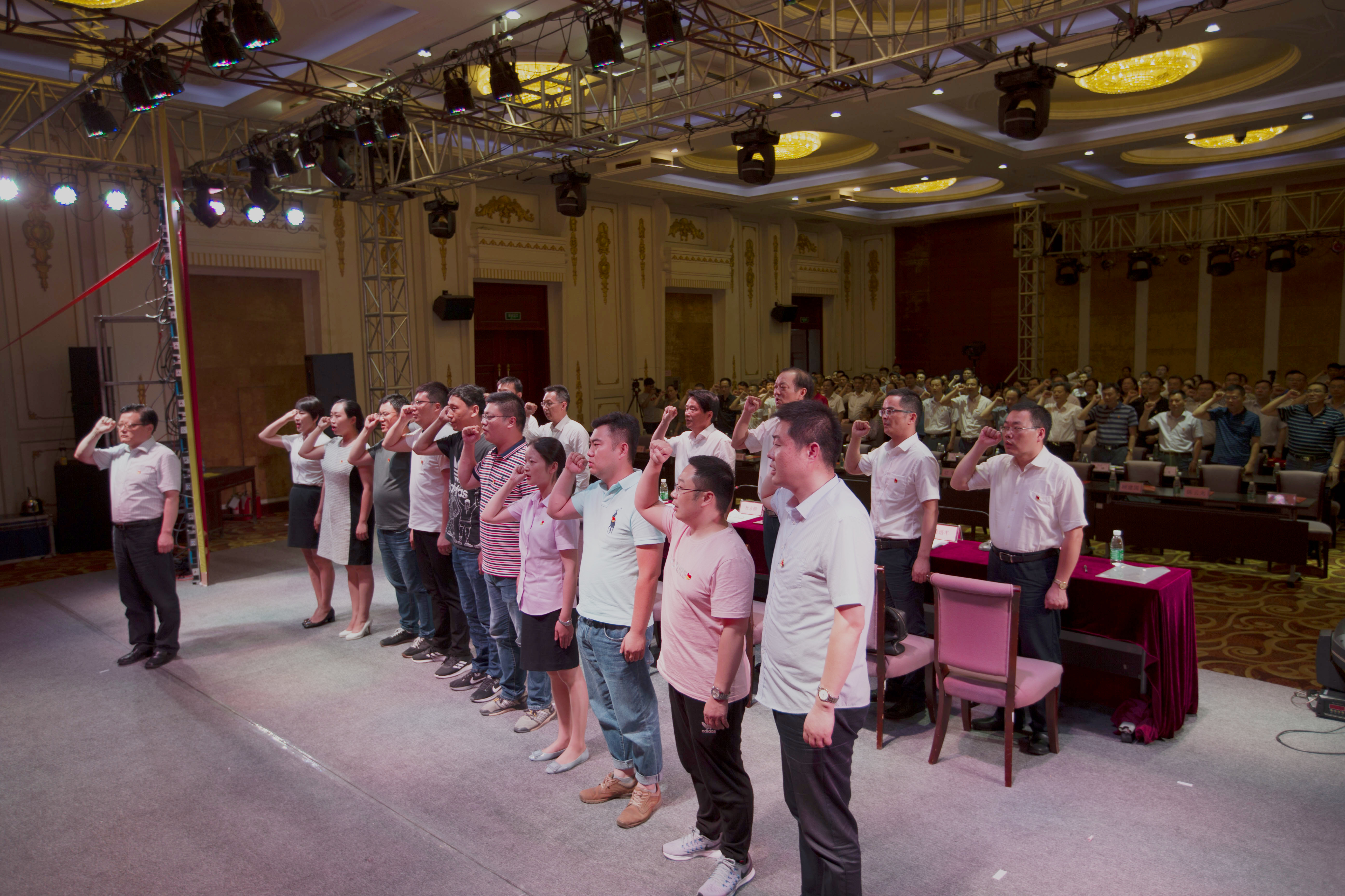 產(chǎn)控集團黨委副書記、副董事長、總經(jīng)理陸強新帶領(lǐng)新黨員進(jìn)行入黨宣誓儀式,全體與會黨員莊嚴(yán)起立,舉起右拳,重溫入黨誓詞。