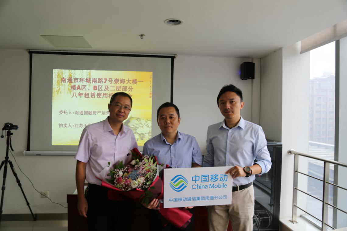在宣讀了房屋租賃使用權(quán)拍賣的特別規(guī)定等文件并確認各競租人無異議后,現(xiàn)場監(jiān)拍人遞交了本場拍賣會的底價函。經(jīng)拍租,中國移動通信集團江蘇有限公司南通分公司代理人、張家港保稅區(qū)佑福珠寶貿(mào)易有限公司代理人分別拍中崇海大樓A區(qū)八年租賃使用權(quán)、B區(qū)八年租賃使用權(quán),并簽署了成交確認書,成交年租金合計達620萬元,八年租金總額達4960萬元。公司領(lǐng)導(dǎo)代表公司向房屋競租人遞送了鮮花表達祝賀并合影留念。統(tǒng)一規(guī)劃,統(tǒng)一布局,統(tǒng)一招租,統(tǒng)一競租,國融公司充分挖掘崇海大樓優(yōu)越的商業(yè)地段和濃厚的商業(yè)氛圍優(yōu)勢,轉(zhuǎn)化為優(yōu)良、持久、高效的經(jīng)營收益,實現(xiàn)了該處資產(chǎn)科學(xué)升值。公司將以崇海大樓成功招租的經(jīng)驗為借鑒,繼續(xù)做好所管理國有資產(chǎn)的升級改造,切實履行好國有資產(chǎn)保值增值的職責(zé),推動企業(yè)的高質(zhì)量發(fā)展。