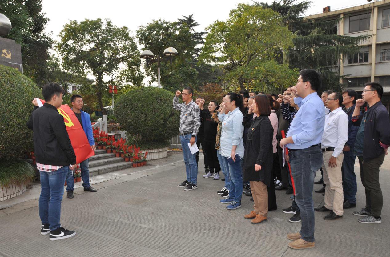 來到南通獨(dú)立支部紀(jì)念地碑前,在大生集團(tuán)有限公司副董事長(zhǎng)、總會(huì)計(jì)師漆穎斌的熱情接待下,紡織染公司全體黨員聆聽了黨辦潘宇關(guān)于獨(dú)立支部光榮歷史的講解,對(duì)其成立的過程,最初成員,以及偉大意義和作用都有了更為深刻地認(rèn)識(shí)和理解。作為南通最早的黨組織,中共南通獨(dú)立支部的成立點(diǎn)燃了江海大地第一簇革命星火,掀開了南通革命史上嶄新的一頁。 瞻仰紀(jì)念碑,紡織染黨委書記、董事長(zhǎng)李志宏帶領(lǐng)全體黨員干部莊嚴(yán)地舉起右手,在中國(guó)共產(chǎn)黨南通支部紀(jì)念碑前,面對(duì)火紅的黨旗,重溫入黨誓詞,緬懷革命先輩光榮歷史,深刻感受他們?cè)诟锩鼩q月里,不忘初心,牢記使命,創(chuàng)獨(dú)立支部、干經(jīng)天偉業(yè)的壯志豪情;感受他們?yōu)橹袊?guó)人民謀幸福,為中華民族謀復(fù)興的艱苦卓越歷程。
