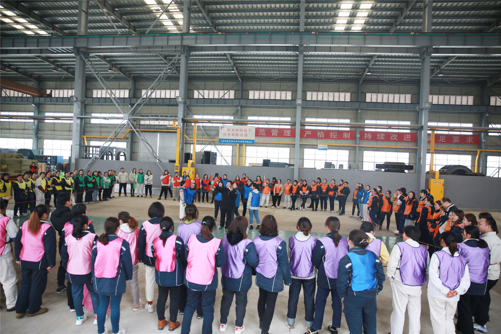 3月8日下午, 一百多名女職工歡聚2號車間,在教練的帶領(lǐng)下,分成了10個小組,按照要求分別設(shè)計了自己隊的隊名、隊徽、口號、隊歌,并依次展示了團隊風采。在充滿樂趣的熱身小游戲后,便開始了“坦克大戰(zhàn)”、“環(huán)游世界球”、“動力繩圈”等團隊拓展項目。在彼此信任、相互溝通、集體協(xié)作的氛圍中,各小組成功完成了此次拓展任務。參加此次活動的廣大女職工們有長期伏案的科員,有奮戰(zhàn)一線的工人,也有集團中高層領(lǐng)導,在新組建的團隊中,大家拋開身份,融入隊伍,在隊長的帶領(lǐng)下,克服困難,團結(jié)一心,共同為隊伍加分增光。 此次拓展活動,既緩解了女職工們工作的疲憊和壓力,又增進了同事間的友誼,增強了團隊凝聚力,大家在娛樂中感受到團隊的力量。集團黨委副書記、工會主席李建兵給女工們送上節(jié)日的祝福,他表示,廣大女職工們在此次活動中充分展示了巾幗風采,彰顯出金通靈女工隊伍的魅力,在今后的工作中,大家要時刻握緊手中的“動力繩”,勁往一處使,力往一處用,跟著團隊的步調(diào),以奮發(fā)昂揚的姿態(tài)繼續(xù)前行! |
