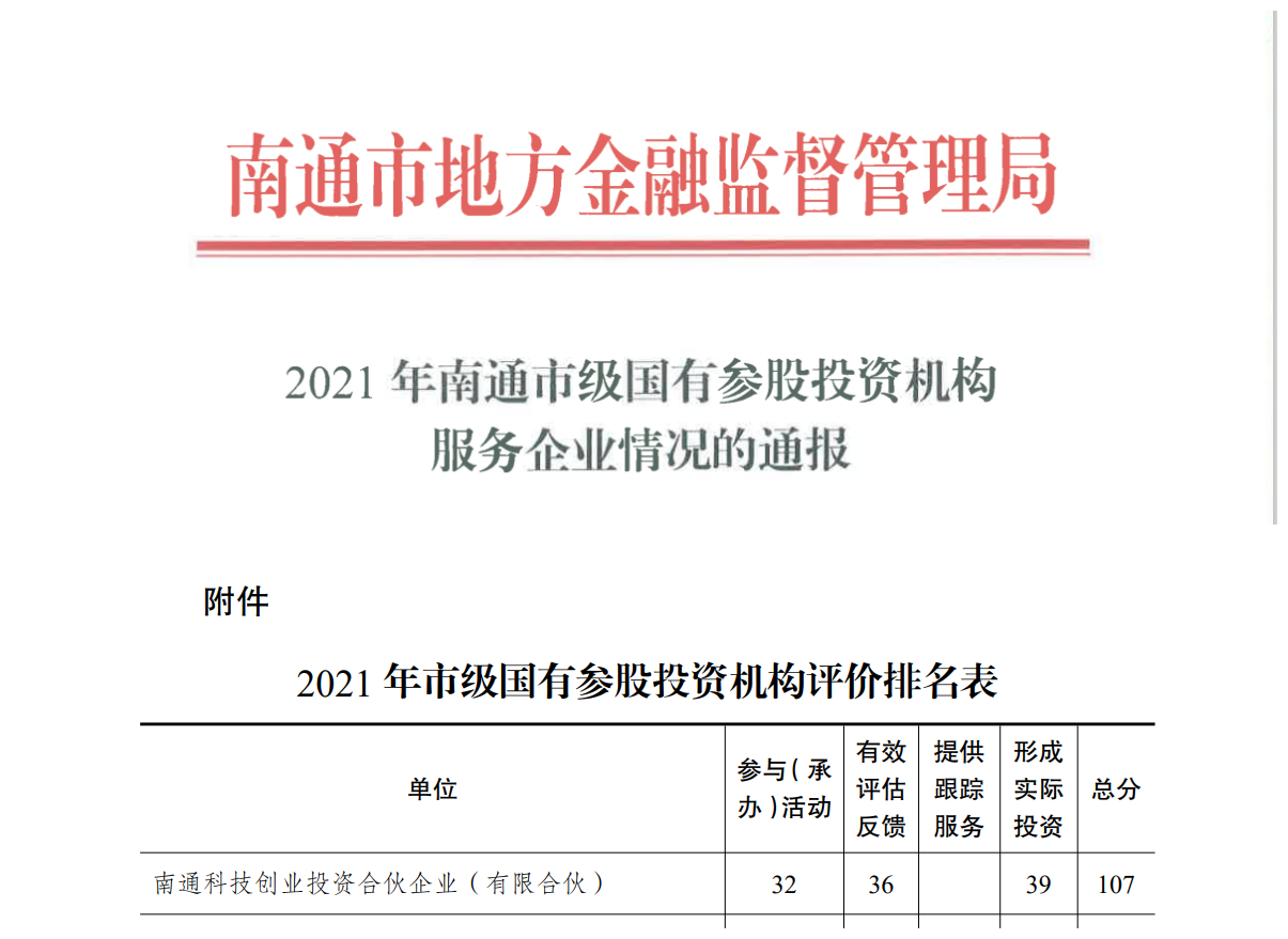 科創(chuàng)管理公司2021年度市級國有參股投資機(jī)構(gòu)服務(wù)企業(yè)排名第一