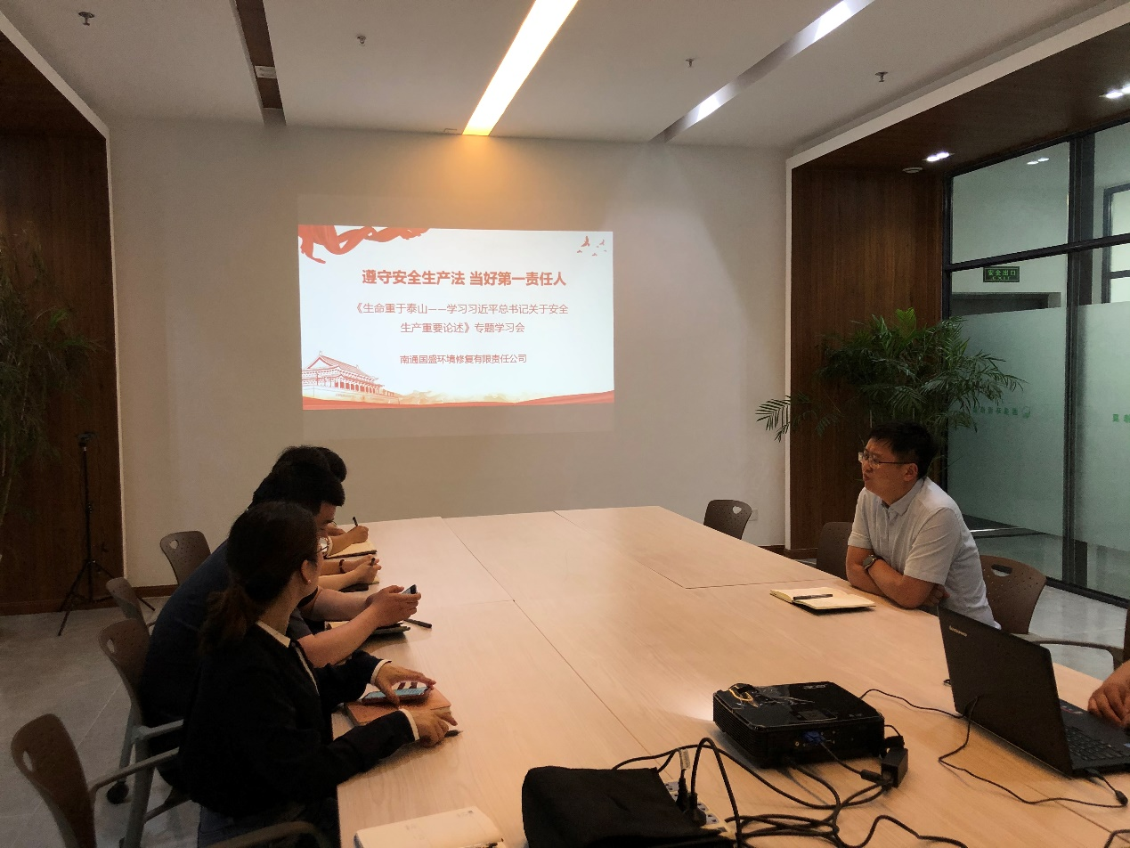 為進(jìn)一步加大全公司安全生產(chǎn)宣教力度,推動(dòng)落實(shí)企業(yè)安全主體責(zé)任,全面提高員工安全素質(zhì),6月13日下午,國(guó)盛環(huán)境在會(huì)議室開(kāi)展“遵守安全生產(chǎn)法 當(dāng)好第一責(zé)任人”主題活動(dòng),組織全體員工集中學(xué)習(xí)《生命重于泰山——學(xué)習(xí)習(xí)近平總書(shū)記關(guān)于安全生產(chǎn)重要論述》電視專(zhuān)題片。
