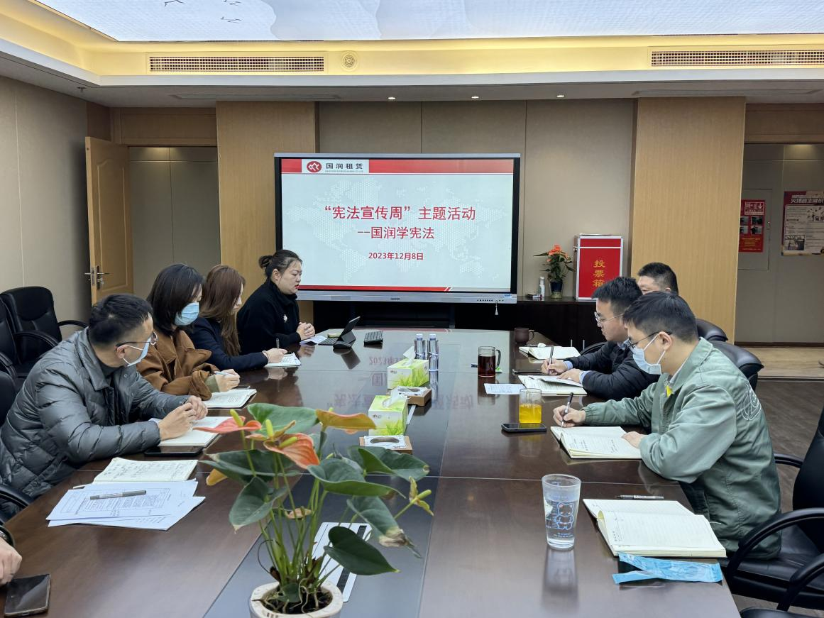 12月8日上午,在第十個(gè)國家憲法日來臨之際,南通國潤融資租賃有限公司圍繞“大力弘揚(yáng)憲法精神,建設(shè)社會(huì)主義法治文化”主題,組織開展“憲法宣傳周——國潤學(xué)憲法”專題活動(dòng)。為作好本次法律宣傳活動(dòng),公司領(lǐng)導(dǎo)高度重視,組織召開專題會(huì)議,向全體員工宣導(dǎo)中央宣傳部、司法部、全國普法辦聯(lián)合印發(fā)的《2023年全國“憲法宣傳周”工作方案》,同時(shí)對(duì)如何開展好此次活動(dòng)進(jìn)行了部署。公司還邀請法律顧問單位——北京盈科(南通)律師事務(wù)所的繆姝姝律師,就憲法相關(guān)知識(shí)作了專題講座,公司全體員工參會(huì)。
