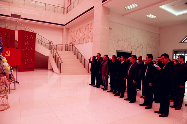 黨員代表向革命先烈群體浮雕敬獻花籃后,全體黨員面對黨旗重溫了入黨誓詞。大家紛紛表示,要堅持發(fā)揚革命傳統(tǒng),繼承、弘揚好革命傳統(tǒng)精神,進一步加強黨性修養(yǎng),進一步密切與人民群眾的血肉聯(lián)系,進一步改進工作作風。